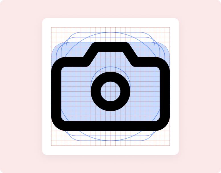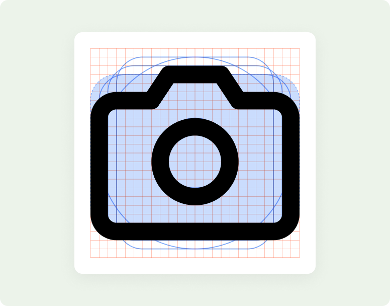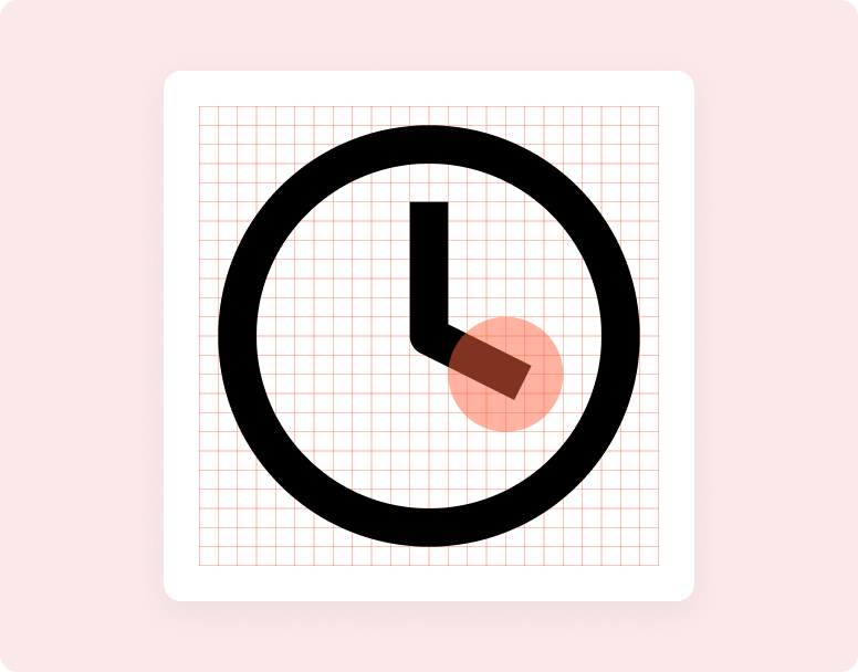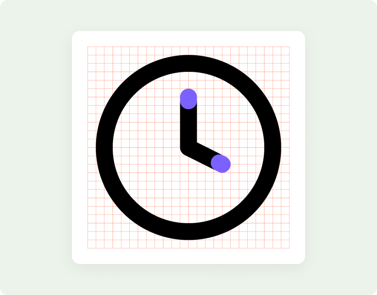 The icon grid provides a structured base for our icons. The foundation of the final grid is a pixel grid — which means that each square of the grid maps directly to a single pixel on a computer screen. Vera icons are drawn on a 24px x 24px canvas and scaled linearly to different sizes. The primary building block is a 2px centered stroke.